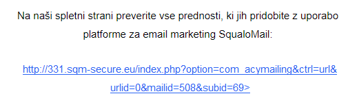 Nič ne spominja na nezaželeno pošto bolj, kot sumljiva povezava, ki kar kliče po težavah, kot je na primer: »www.KlikniTukajZaOgledMojegaPodjetja.si«.