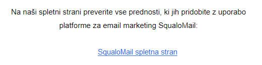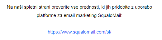 Morda želite s takšnim sporočilom pripeljati vaše prejemnike na najbolj privlačno in uporabno stran na svetu, vendar obstaja absolutno nič možnosti, da bodo nanjo tudi kliknili. Svetujemo vam, da vedno spodbudite vaše prejemnike s tem, da jim razložite, kaj lahko pričakujejo s klikom na povezavo in kakšne prednosti jim to prinaša.