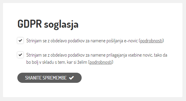 »Najverjetneje ste že slišali za novo uredbo EU o varstvu podatkov (oz. GDPR), ki začne veljati 25. maja 2018. Za doseganje skladnosti z novo uredbo moramo tako od vas ponovno pridobiti soglasje, da želite prejemati naša sporočila.