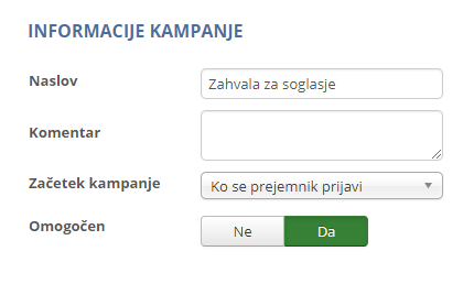 Bodite tudi pozorni, da se newsletterji za soglasja ne prekrivajo z vašo trenutno kampanjo.