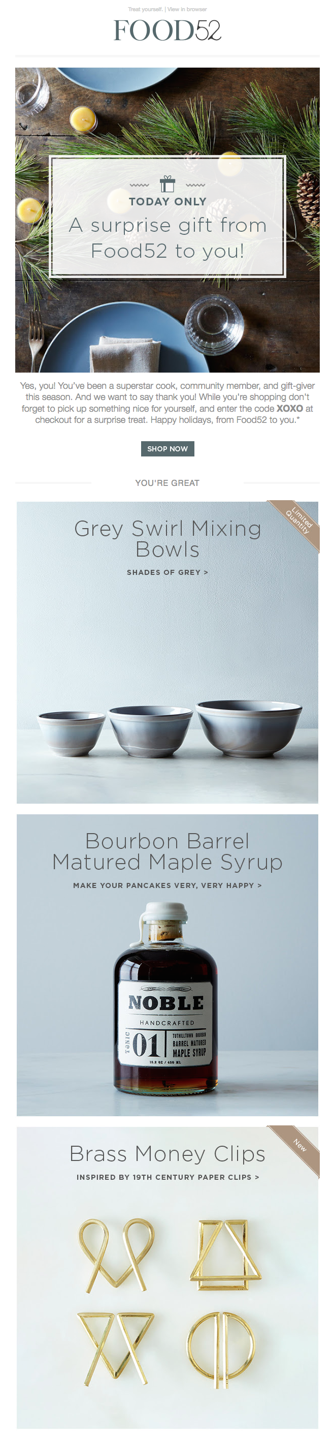Zahvala je vedno dobra stvar, darilo pa še boljše – a od vsega je najboljše presenečenje. Ljudje imamo strašno radi presenečenja, tudi če niso najboljša, važno je, da nam prinesejo nekaj vznemirjenja. In ravno na to je računala znamka Food52, ko je svojim strankam pripravila darilo v obliki presenečenja.