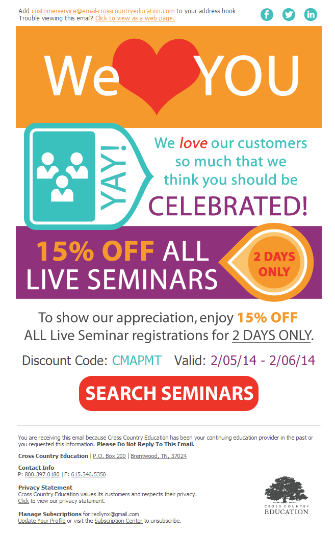 Če imate radi svoje stranke, vam res ni treba čakati na posebno priložnost, da jim to poveste. Svojo ljubezen jim namreč lahko izpoveste kar na naključen dan, seveda pa lahko to storite na barvit, zabaven in prisrčen način, kot znamka Cross Country Educations.