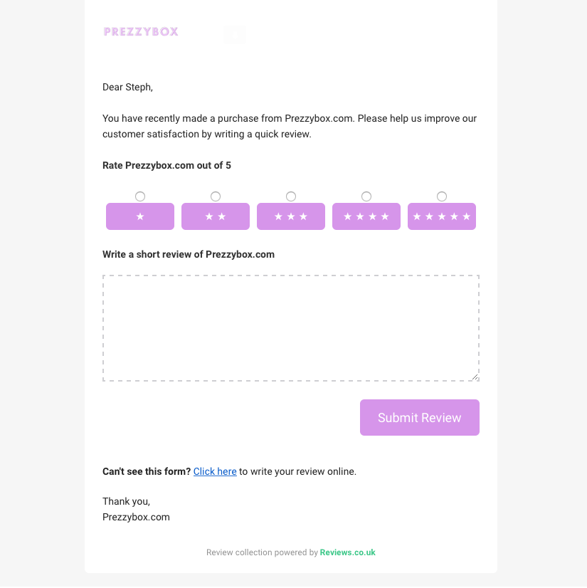 Strankam, ki so pri vas opravile nakup, lahko pošljete e-pošto, v kateri jih poprosite za povratne informacije. Mnenja dejanskih strank so namreč resnično uporabno orodje, ki lahko v nakup prepriča še več novih strank, vam pa da koristne informacije, s pomočjo katerih lahko v prihodnje še izboljšate svoj prodajni proces.