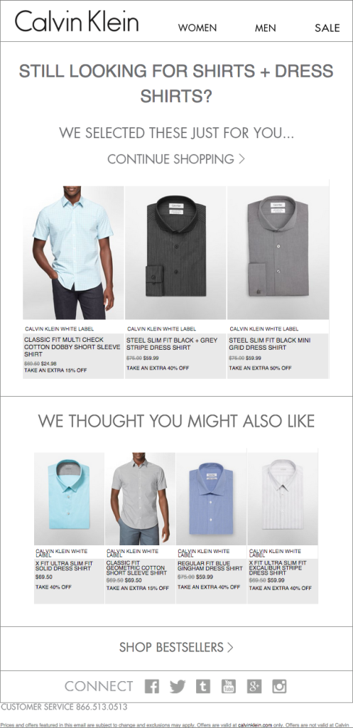 Strankam, ki so pri vas že opravile nakup, lahko pošljete email s priporočenimi izdelki; gre za izdelke, ki bi jim lahko bili všeč glede na nakup, ki so ga že opravili. Tako boste strankam dali občutek, da mislite na njih, poleg tega pa boste povečali možnosti, da opravijo nov nakup.