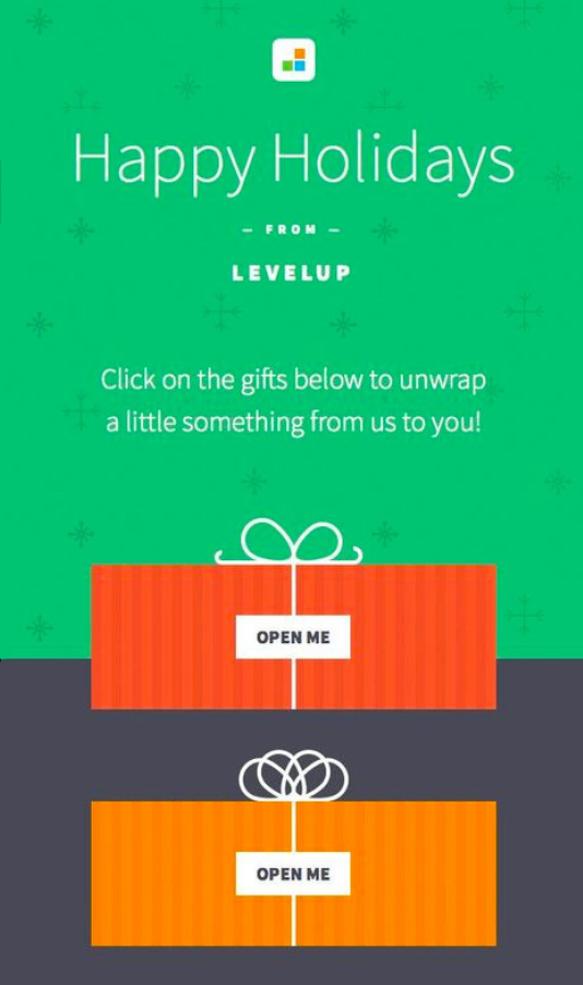 Omenili smo že, da ljudje obožujemo darila – in to tako zelo, da se jih preprosto ne moremo naveličati. To seveda pomeni, da so e-poštna sporočila z različnimi prazničnimi darilci vedno med najbolj priljubljenimi. To dobro vedo tudi pri znamki LevelUp, zato so našo ljubezen do daril združili s še eno stvarjo, ki jo vsi obožujemo, gre seveda za presenečenja. Šele klik na povezavo v e-poštnem sporočilu nam namreč razkrije, kaj so pripravili za nas …