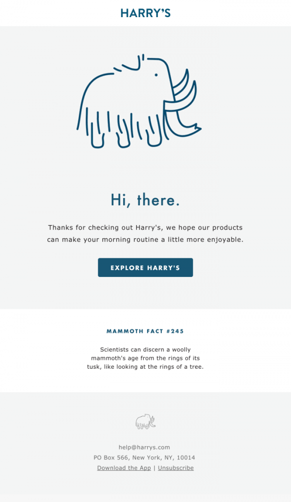 Minimalističen slog z veliko praznega prostora podaja jasno sporočilo in poskrbi za lažjo berljivost, kar je tudi eden od razlogov, da Harry’s s svojim email marketingom dosega odlične rezultate.