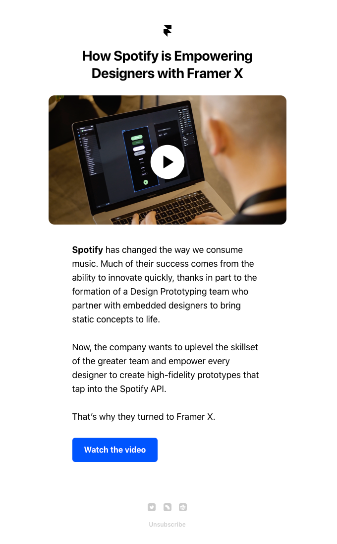 Franer ponuja odličen primer uporabe videa v e-poštnih sporočilih. Z video zgodbo namreč v kratkem času in na prijazen način povedo več, kot bi povedali v dolgem besedilu.