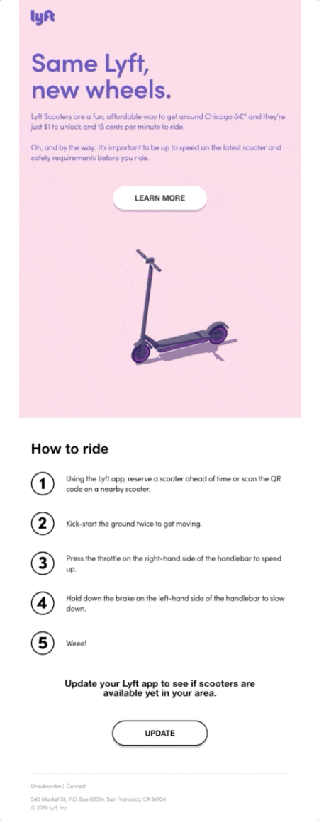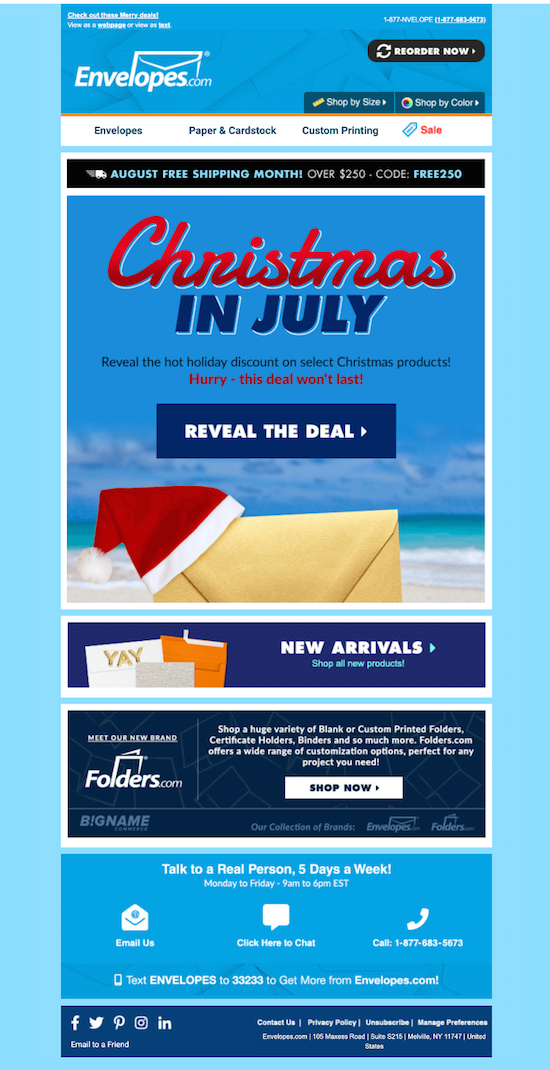 Omenili smo že, da bodo animacije med glavnimi oblikovalskimi trendi tega leta, newsletter podjetja Envelopes.com pa ponuja odličen primer uporabe. Dogajanje in premikanje v e-poštnem sporočilu takoj pritegne pozornost prejemnikov, poleg tega pa so animacije tudi izjemno zabavne in (vsaj zaenkrat) še dovolj redke, da z njimi zlahka izstopate.