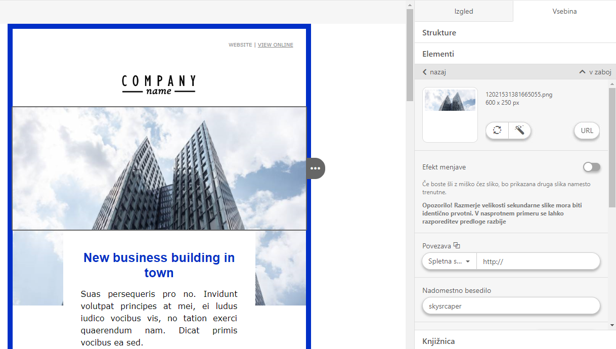 Newsletterji so email sporočila, ki jih pošljete vašim prejemnikom. Newsletter lahko ustvarite z uporabo predpripravljene predloge, ki jo uredite v Drag & Drop urejevalniku ali pa vstavite svojo HTML predlogo.