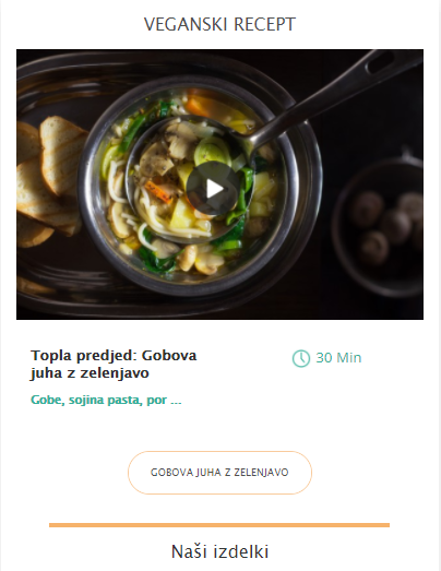 Lovro seveda pri tem tudi ni pozabil na poziv k akciji, ki ga je strateško vstavil takoj za priporočenimi izdelki. V tem primeru je bil CTA sestavljen iz vidnega gumba, ki bralca vabi k obisku spletne trgovine.