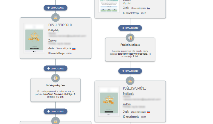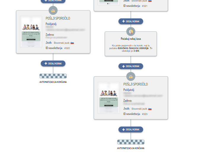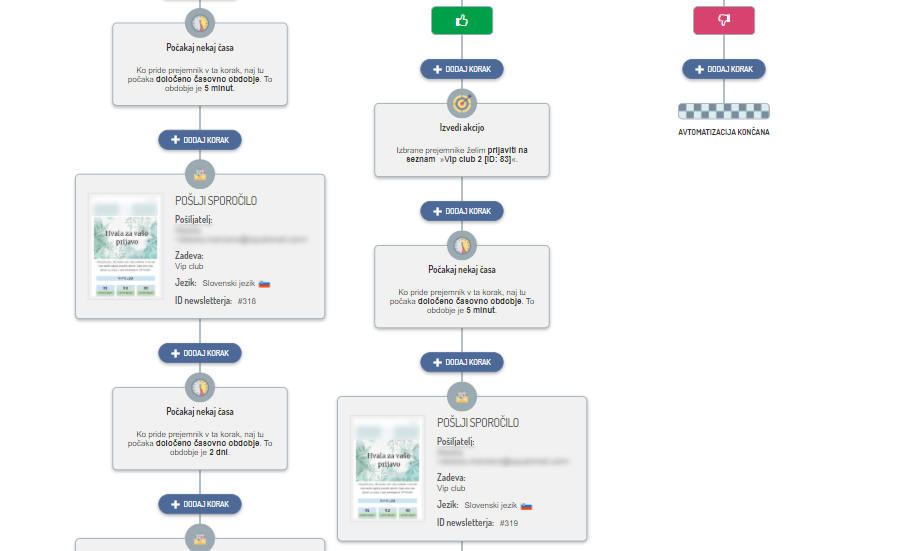 Prvo sporočilo avtomatizirane serije je enako za obe kategoriji VIP strank: povabilo za registracijo, poslano 5 minut po tem, ko je bila stranka dodana na enega od dveh seznamov VIP Klub in VIP Klub-2.