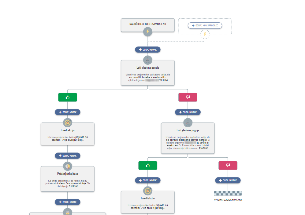 Ko kupec v enem mesecu opravi nakup višji od 200€ ali 3 nakupe v enem mesecu, ga sistem samodejno vključi na ustrezen seznam.
