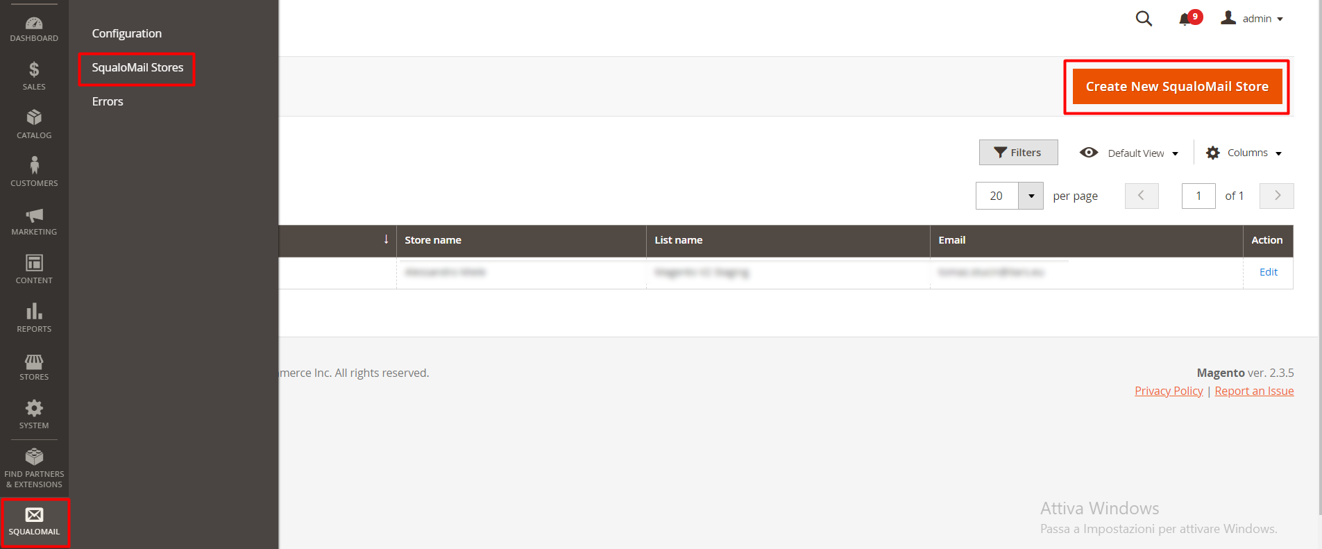 - Kliknite Squalo -> Squalo Stores -> Create New Squalo Store in ustvarite novo trgovino.