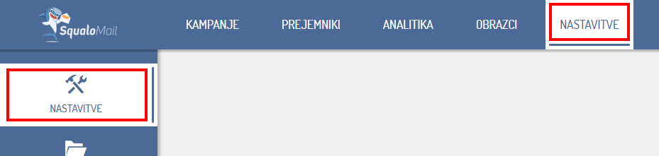 1. Pojdite na Glavni meni (zgoraj) > Nastavitve > Stranski meni (levo) – Nastavitve.