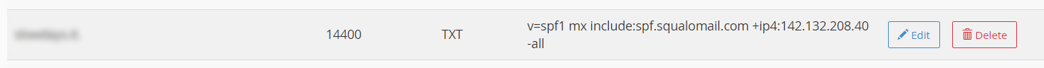 Najprej morate preveriti, ali TXT zapis za SPF že obstaja. Če obstaja, ga uredite tako, da mu pred -all dodate zapis include:spf.squalomail.com