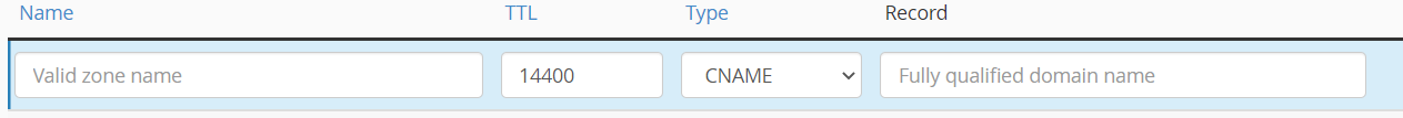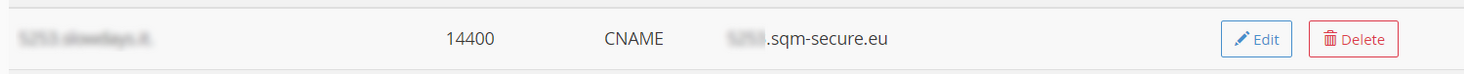 Za nastavitev Domene za povezave po meri pa je treba dodati CNAME zapis tako, da v postavko Name vnesete vrednost appID.domain. (kjer je domain domena, ki se uporablja za pošiljanje, appID pa je številka vaše Squalo aplikacije), pod Record pa vnesete appID.sqm-secure.eu. (kjer je appID številka vaše Squalo aplikacije).