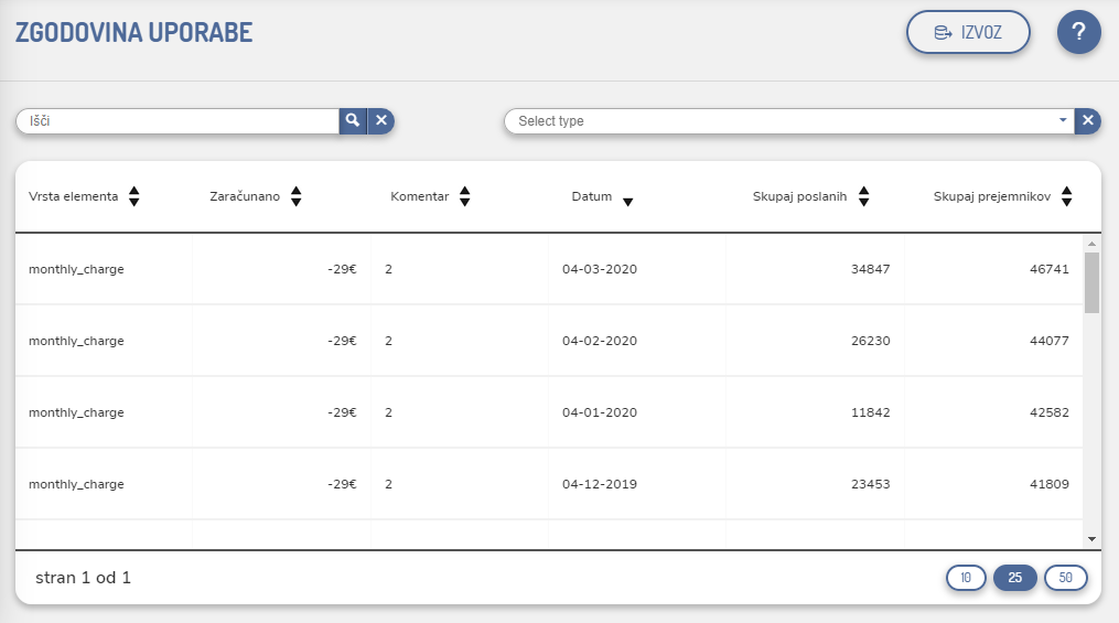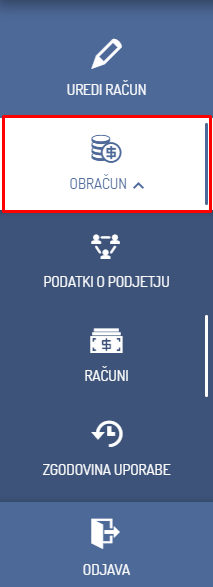 Tukaj lahko spremljate vse že izdane račune.
