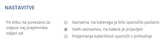 3. Določite, od česa naj se prejemnik odjavi po kliku na povezavo za odjavo: