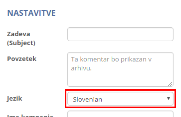 Privzeti jezik odjavne strani je jezik aplikacije. Za vsak newsletter ali follow-up sporočilo pa lahko posebej nastavite jezik: