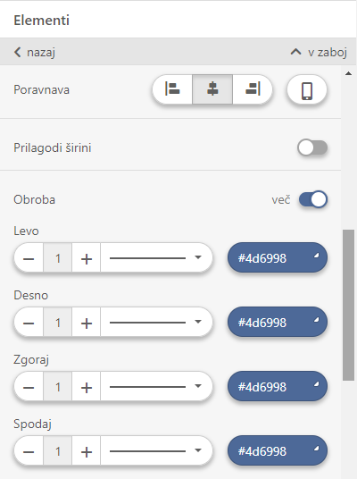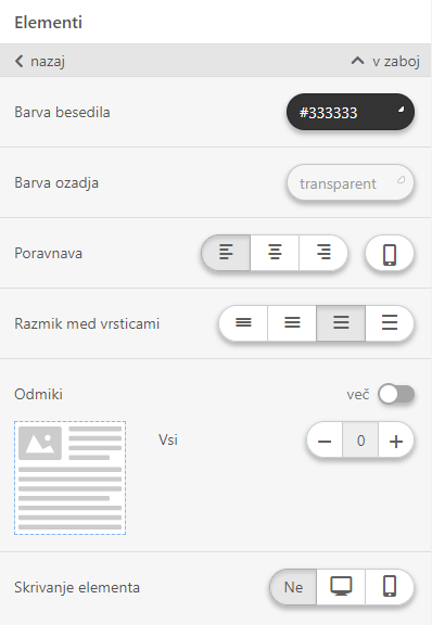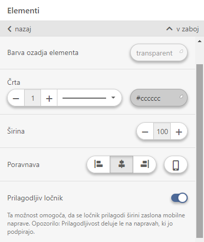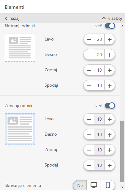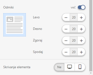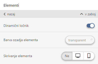- Prikaz elementa (element lahko skrijete na desktop ali mobilnih napravah)
