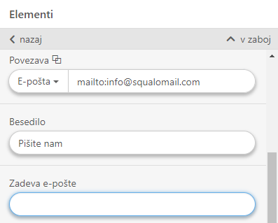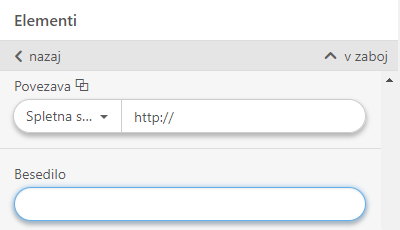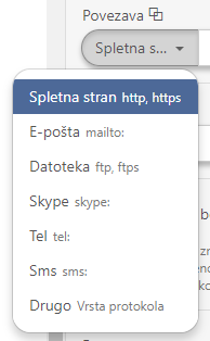 V območje Povezava vnesete poljubno povezavo. Urejevalnik samodejno zazna, za katero vrsto povezave gre – spletna stran, mail, file, Skype, telefon, sms, drugo.