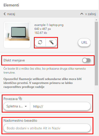 - Zelo priporočljivo je, da v sliko dodate povezavo. Ta je lahko URL povezava ali email.