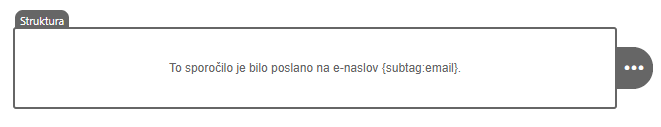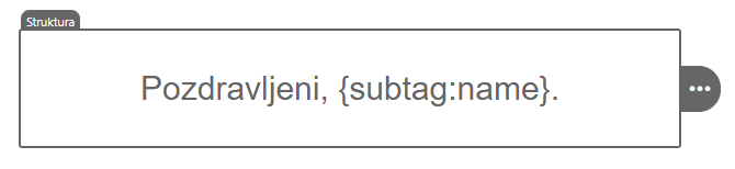 - Prejemnikova polja pa vam omogočajo, da dodate v predlogo subtag-e za prejemnikovo ime, priimek, email naslov ali drugo poljubno personalizirano oznako glede na polja po meri, ki jih imate shranjena v vaši aplikaciji. Prejemnikov email se po navadi uporabi v nogi predloge (npr. To sporočilo je bilo poslano na e-naslov {subtag:email}) ostale povezave pa kot nagovor v Zadevi sporočila ali v samem sporočilu (npr. Pozdravljeni, {subtag:name}).