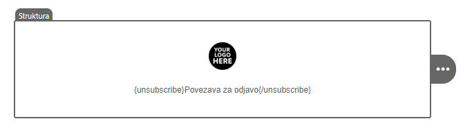 - Upravljanje prijave vam omogoča dodati avtomatsko Povezavo za odjavo, Potrditev prijave, Posodobitev podatkov, Možnosti GDPR soglasja in Potrdi GDPR soglasje. Te povezave se pogosto postavijo v nogo predloge (Povezava za odjavo je obvezni del vsake noge predloge), lahko pa tudi v del glavne vsebine (npr. Potrditev prijave).