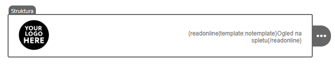 - Newsletter vam omogoča dodati avtomatsko povezavo za Ogled na spletu, Ogled prejšnjih newsletterjev in Zadevo (Subject). Te povezave se najpogosteje vstavi v glavo predloge.