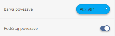 Če dodajate oznake na tak način, lahko v urejevalniku desno spreminjate barvo in podčrtanost povezave. (Primer zgoraj)