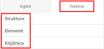 Ko kliknete na Element v predlogi, se vam odpre zavihek Vsebina > Elementi, kjer urejate ta element.