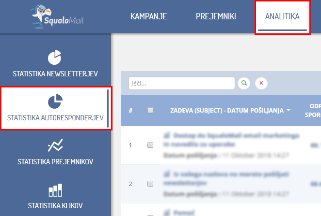 Do statistike follow-up sporočil dostopate na Glavnem meniju > Analitika > Statistika autoresponderjev.