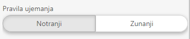 Ker potrebujemo povezavo do spletne strani oz. trgovine v pametnem elementu, v zavihku »Notranja pravila« predpišemo, da je vrednost spremenljivke nastavljena na vse elemente: