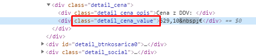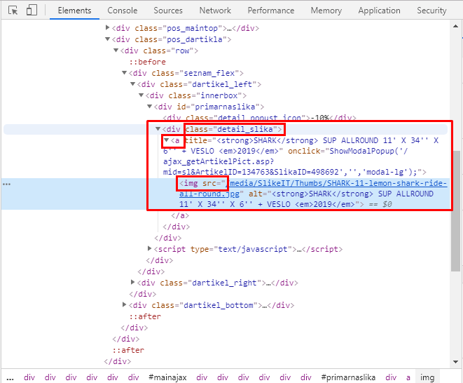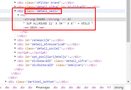 Da pridobimo vrednosti, ki jih potrebujemo, gremo najprej na spletno stran, kjer se izdelek nahaja.