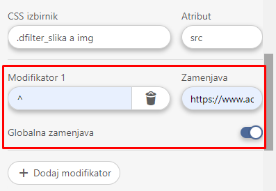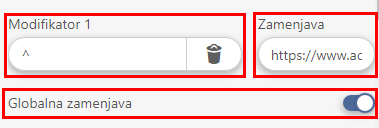 - V polje Zamenjava pa vnesemo začetno spletno stran naše trgovine (npr. https://www.actionmama.com).