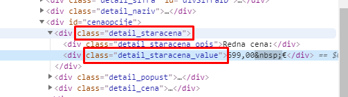 Sedaj smo torej nastavili Zunanja pravila za pridobivanje Cene iz spletnega mesta.