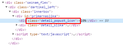 Z miško se postavimo na popust izdelka, kliknemo z desno tipko in izberemo »Preglej element« (ali v določenih brskalnikih »Preveri« / »Inspect«).