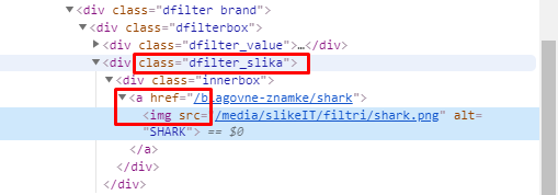 Odpre se nam konzola, v kateri bomo našli CSS selektor z atributi.