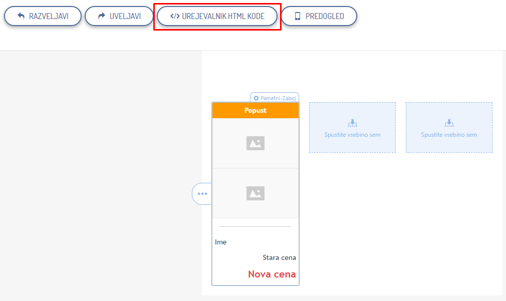 Najprej torej označimo naš Pametni zaboj in zgoraj izberemo Urejevalnik HTML kode.