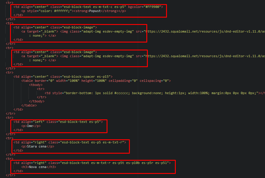 Ko imamo enkrat pripravljeno strukturo z našimi tremi karticami izdelkov, je najboljše, da strukturo kar shranimo, saj jo lahko tako uporabimo in prilagodimo v katerem koli newslettru.