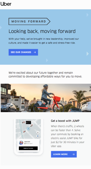 Pri znamki Uber so zato takrat, ko so uvedli novosti, ki bodo še izboljšale uporabniško izkušnjo za B2B stranke, poslali privlačno sporočilo, s katerim so učinkovito pritegnili njihovo pozornost in jih prepričali v naročilo.