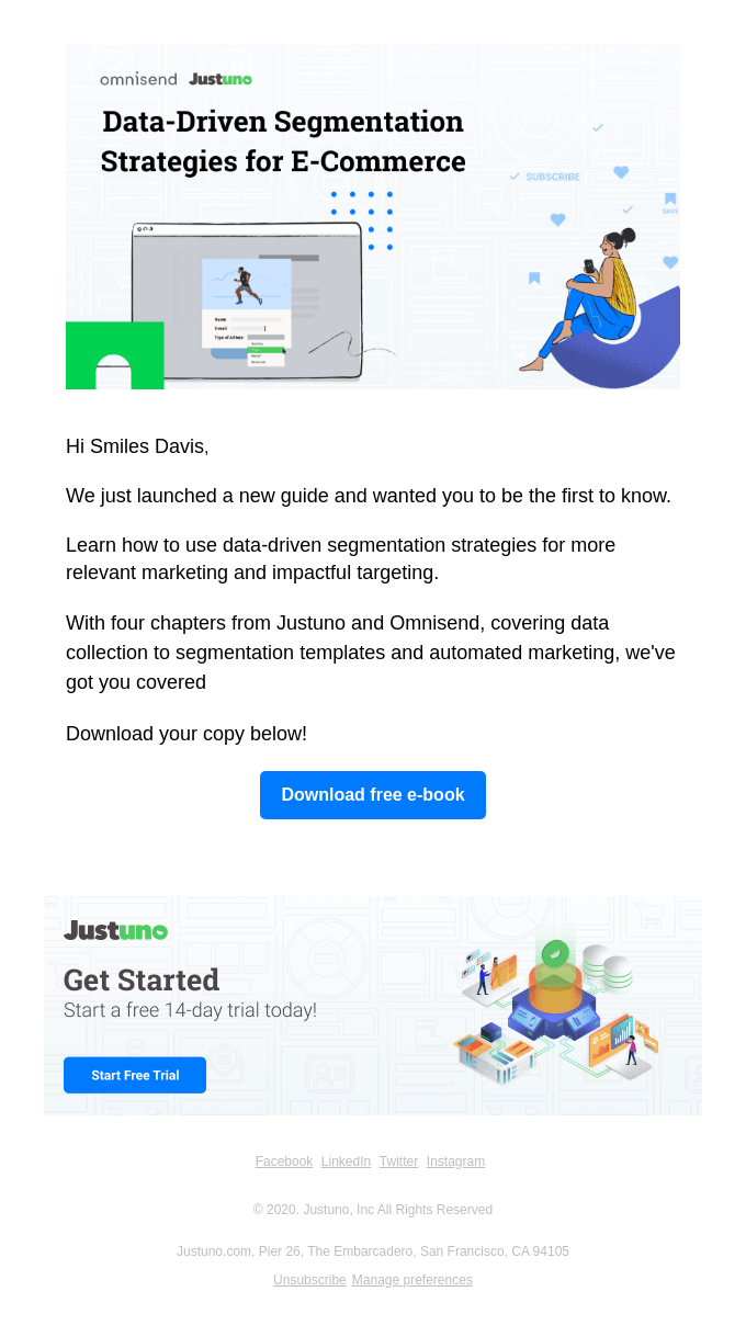 Segmentacija je zato izjemno pomembna, a če boste uspeli ta proces avtomatizirati, boste s tem prihranili ogromno časa, truda in denarja. Informacije, ki vam bodo koristile pri segmentaciji, lahko začnete pridobivati že na samem začetku vaše skupne poti: na obrazcu za prijavo na vaše e-novice, na obrazcu za registracijo, v sklopu e-maila dobrodošlice …
