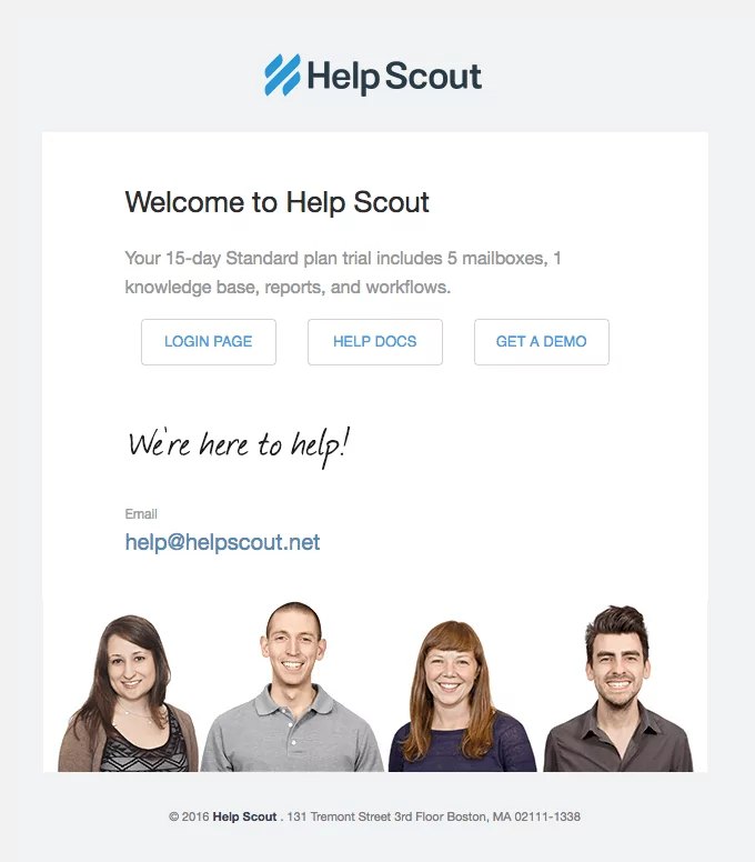 Ljudje imajo radi znamke, ki jim dajo vedeti, da jim ni vseeno zanje, zato bi morali svojim strankam to redno izkazati. Odličen primer je denimo sporočilo znamke Help Scout.