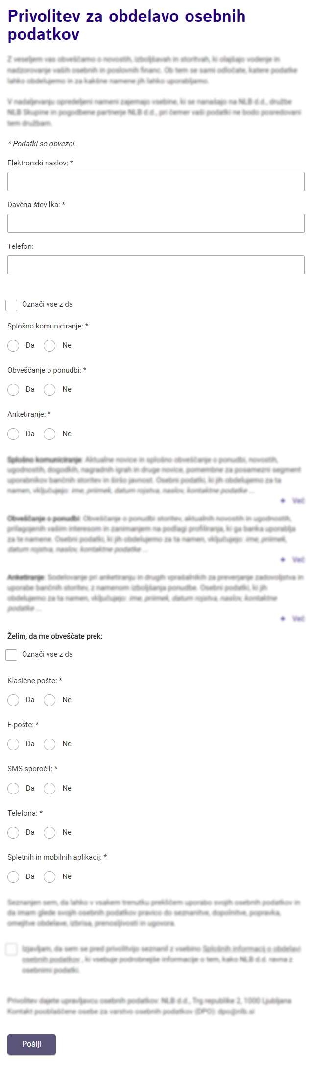 6. Ne uporabljajte kompliciranih obrazcev za soglasja ampak vprašajte za čim manj podatkov