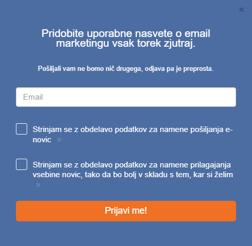 Obljubite lahko ekskluzivne vsebine, dodatne informacije ali podrobnejšo analizo določene teme – vse, kar bi vaše bralce lahko zanimalo, je odličen razlog, da se prijavijo na vaš newsletter.