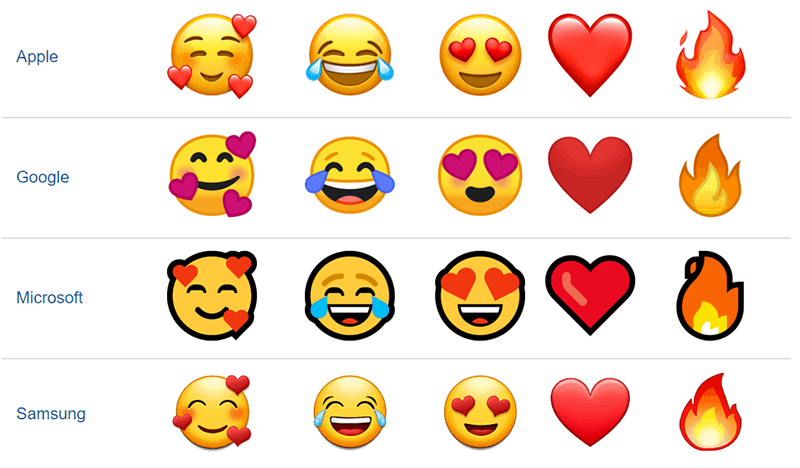 Pri uporabi emoji-jev morate upoštevati tudi dejstvo, da emoji-ji niso enako prikazani na vseh platformah, kjer lahko vaši prejemniki prebirajo svoje e-maile. Različne aplikacije jih prikažejo drugače, razlikujejo se na različnih operacijskih sistemih, enaki pa niso niti v različnih spletnih brskalnikih.