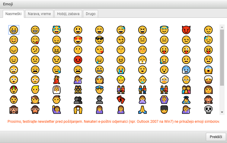 Da se to ne bi zgodilo tudi vam (res ni videti preveč profesionalno, kajne?), vam priporočamo, da svoje e-maile pred pošiljanjem temeljito testirate na vseh napravah in odjemalcih in preverite, če se vaši emoji-ji nasmihajo točno tako, kot ste si zamislili.